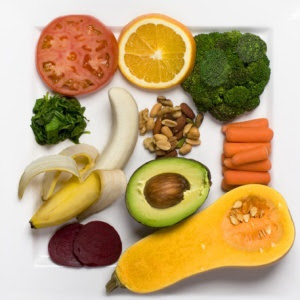 quatro partes de legumes e 3 de frutas cada dia). Todas as frutas e legumes são